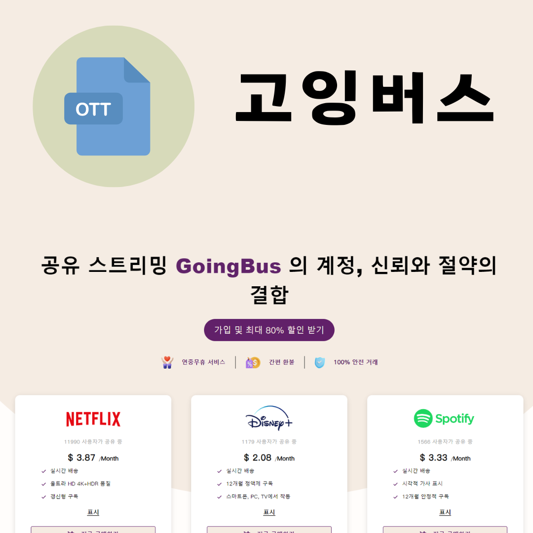 고잉버스는 요즘 떠오르는 업체로, 다양한 OTT서비스를 제공하면서 많은 이용자들을 확보하고 있다.