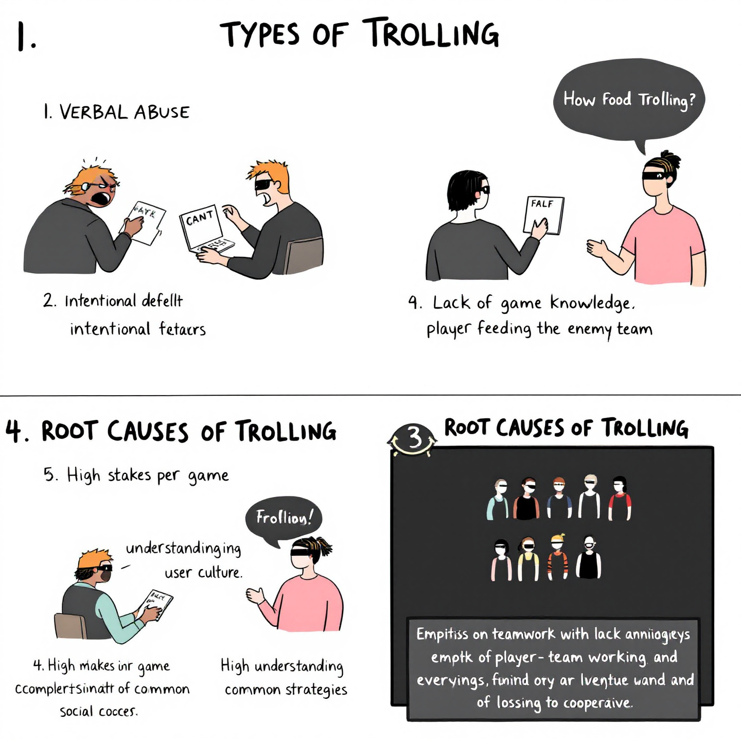 연구 결과에 따르면, 롤에서 발생하는 트롤링은 크게 네 가지 유형으로 분류된다.