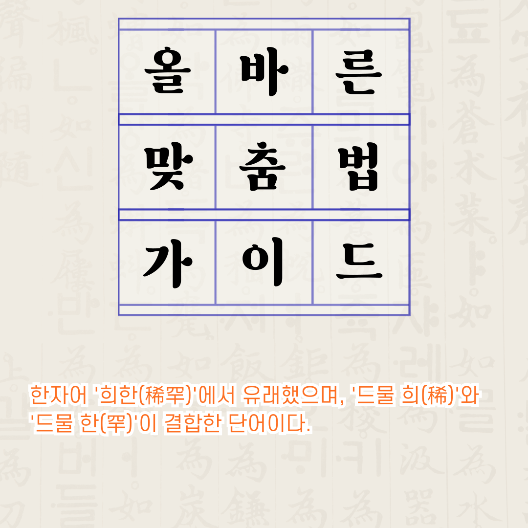 | 한자 | 稀(드물 희) + 罕(드물 한) | 없음 |