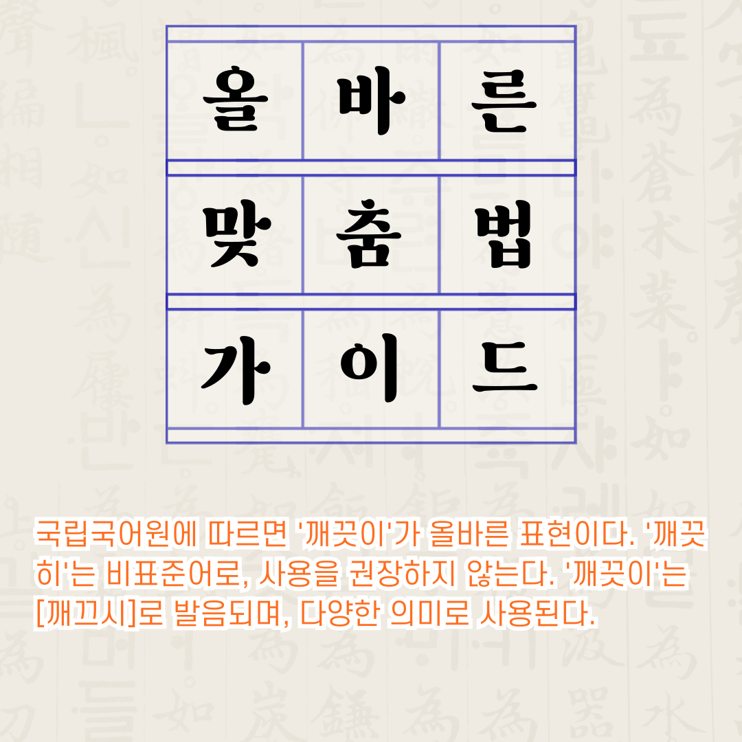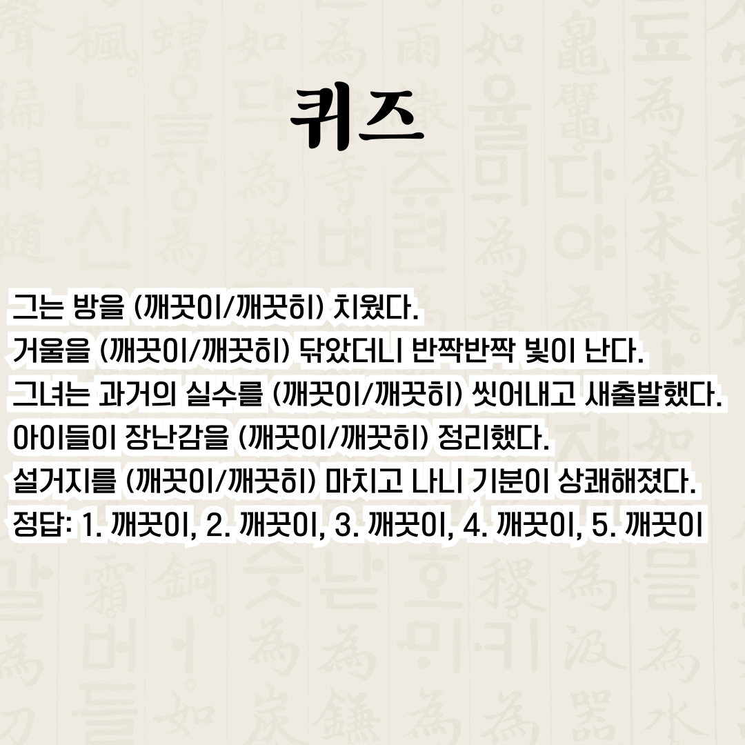 #맞춤법 #깨끗이 #한글맞춤법 #국어공부 #어휘력향상 #한국어학습 #맞춤법퀴즈 #국어능력 #글쓰기팁 #언어능력